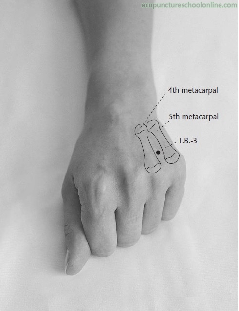 Being the Wood point of the San Jiao channel it is also indicated in TCM for subduing Wind and Heat patterns emanating from the Wood organs of Liver and Gallbladder.