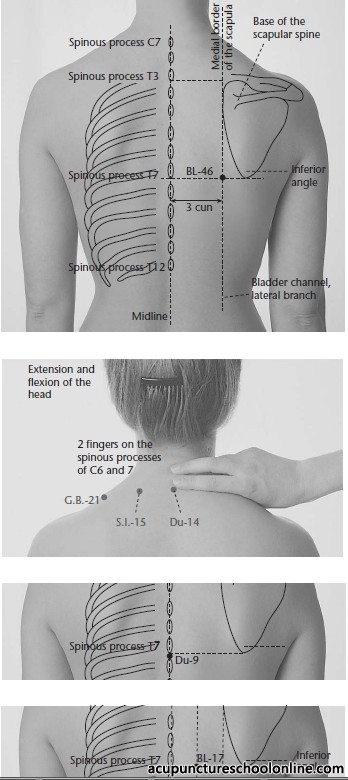 The third set is 6 cun from the midline from T2 to T8. From T2 to T4 relate to Metal, T5 to T8 relate to Wood.