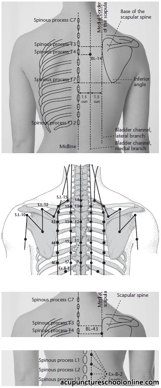 1.5 cun lateral to the lower border of the spinous process of the fourth thoracic vertebra (T4).