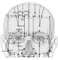 The frontalis trigger point is located 1 cun above this at the level of yangbai GB-14 (Travell & Simons, 1998, Trigger Point Manual)