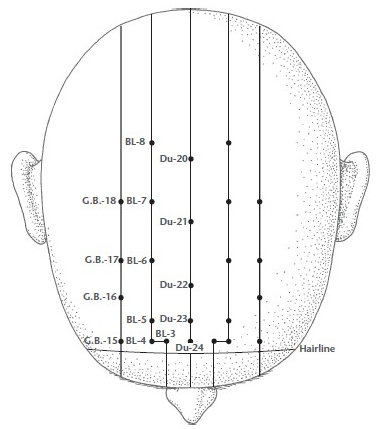 This point should not be needled in infants whose fontanelle has not yet closed.