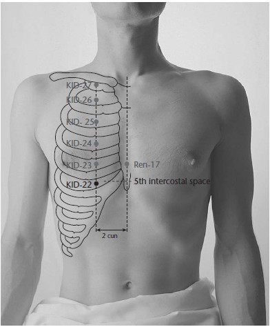 Front Shu of the Chest for the post-natal Kidneys and pre-natal Lung on the upper Chong Mai trajectory (Yuen, 2005, The Extraordinary Vessels, Cecil-Sterman, 2012, Advanced Acupuncture)