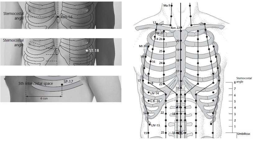 Yuen (2005, The Extraordinary Vessels) believes these points, when related to the front Shu points of the Chong mai are located at 0.5 cun from the midline.