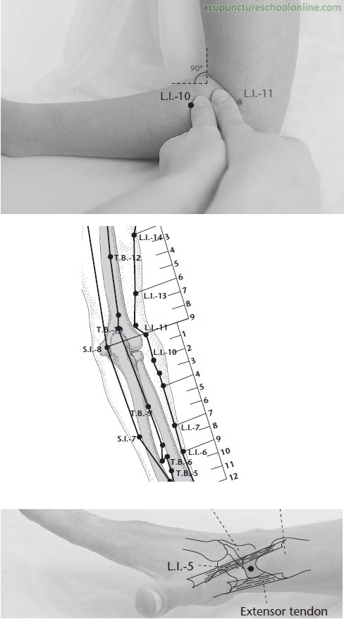 On the radial side of the forearm, 2 cun distal to Quchi L.I.-11 on the line connecting Quchi L.I.-11 with Yangxi L.I.-5