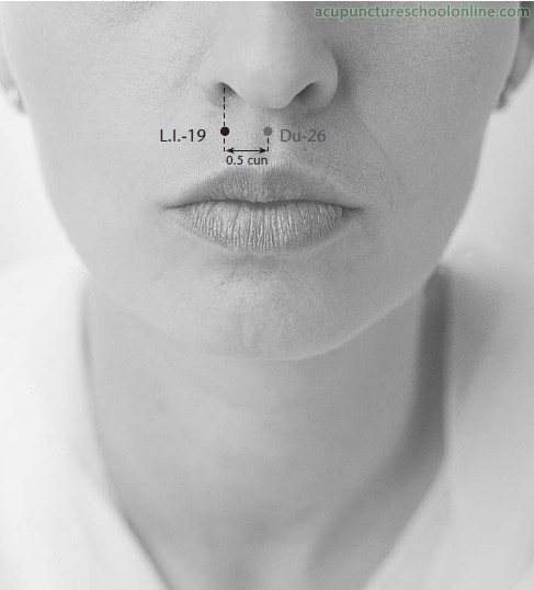 Below the margin of the nostril, 0.5 cun lateral to Renzhong DU-26