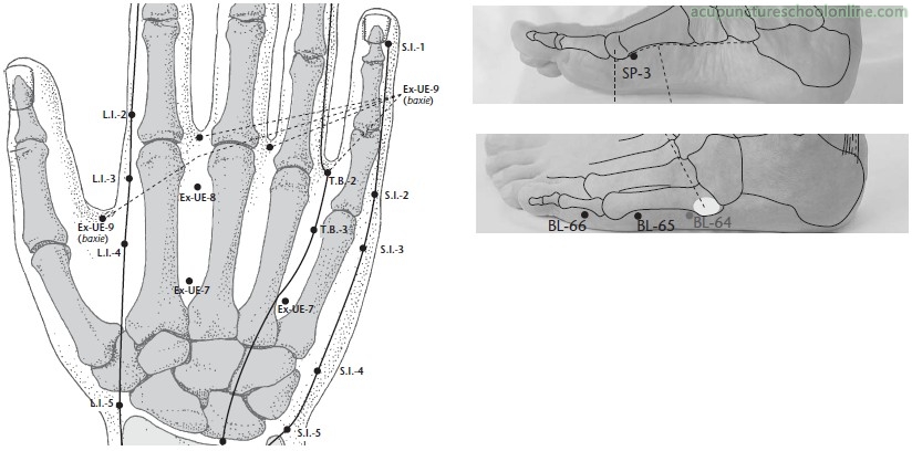 In Tung acupuncture this equates to the Da Bai, Big White, point (22.04) and is often combined with Ling Gu at the other end of the bone, between the first and second metacarpals, slightly proximal to LI-4. Their location on the arm Yangming which controls Qi and Blood in the entire body together with their ability to move Qi and Blood make them applicable for most diseases (Chu, 2015).