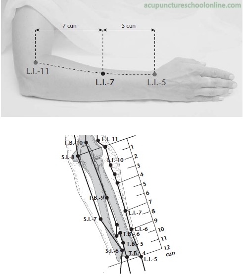 5 cun proximal to Yangxi L.I.-5 on the line connecting Yangxi L.I.-5 with Quchi L.I.-11
