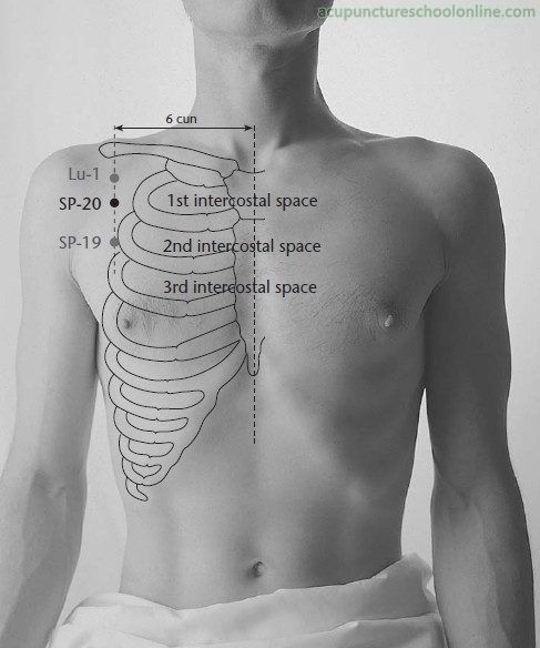 On the lateral side of the chest, in the second intercostal space, 6 cun lateral to the midline.