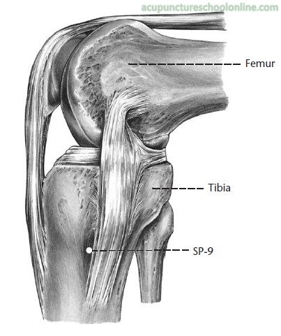 Another point Shen Guan, Kidney Gate, or Tian Huang Fu, Heavenly Emperor Appendage (77.18) is located 1.5 cun below this point, midway between here and Diji Sp-8. It can be used singly for shoulder pain or in combination with Di Huang (1 cun above Lougu Sp-7) and Ren Huang (at Sanyinjiao Sp-6) for a variety of symptoms relating to Kidney Qi deficiency (ibid.)